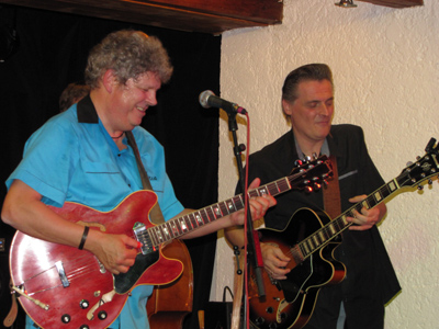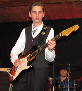 | Dass dann auch noch der Überraschungsgast an beiden Tagen, der junge Siegsdorfer Gitarrist Michael Sedlatschek, sich nach der Pause mit 3 Lieder gekonnt harmonisch einfügt, erstaunte nicht nur die Gäste im Saal, sondern auch die Wiener Musiker, mit welcher Leichtigkeit und Können er seine Solos in die Mojo Songs spielte. Erik Trauner meinten selten einen so jungen Musiker erlebt zu haben, der bereits die Fähigkeiten eines Routiniers hat. Mit tobenden Beifall honorierten die Fans sein Gitarrenspiel. |