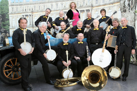 – gegründet 2007 in München – tritt mit über zwölf Banjospielern und einer Sängerin auf. Verschiedene Banjotypen werden von Sousaphon und Waschbrett ergänzt und vermitteln zusammen einen einzigartigen stimmungsvollen Klang. Das Repertoire umfasst Schlager aus den 20er Jahren, Evergreens aus Musicals, Bluegrass und Skiffle-Musik. |