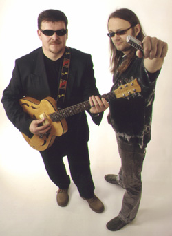 Bluesrudy & Igor Flach waren ein Ausnahmeact in der Acoustic-Blues-Scene. Es groovte, dass einem die Ohren abfielen, die beiden Musiker waren ein echtes Erlebnis. Bluesrudy über das 1A-Bluesprojekt: "Wir machen den Sound einer ganzen Band, also sind wir die wahrscheinlich kleinste Bluesband überhaupt." Nicht nur dass Rudy noch zusätzlich zur Gitarre Drums spielt, auch Igor übernahm viele Parts mit seinen Bassmundharmonikas, spielte knackige Bläsersätze und schiebte den Rhythmus. Seine eigene Art das kleine Instrument zu spielen, verlieh ihm eine überdurchschnittliche Virtuosität, womit er nicht nur in Deutschland, sondern auch in den USA und Russland für Aufsehen sorgte. Bluesman Rudy traf Igor vor ein paar Jahren auf einem gemeinsamen Gastspiel mit Stefan Diestelmann. Es entstand eine besondere Beziehung, die sich im Laufe der Zeit als sehr wichtig und bedeutend für ihre gemeinsame musikalische Tätigkeit darstellte. Rudys Vorliebe zum traditionellen Blues ist die tragende Kraft des Duos. Auch er spielte schon im Vorprogramm vieler grosser Bluesmusiker, wie Canned Heat und Big Joe Turner. Mit ihrer akkustischen Bluesshow mauserten sich beide als Supportact nicht nur im Blues-Bereich. So schon mehrfach bei Lousiana Red, den Yardbirds, Klaus Doldinger, Uwe Ochsenknecht Band und Walter Trout. 1A Blues steht für den hohen Anspruch ihrer Musik und ist auch der Name ihrer aktuellen CD. |