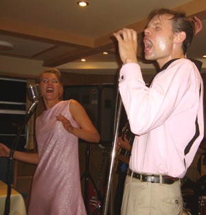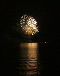 Glück hatten wir wieder mit dem Wetter, dunkle Wolken waren zwar zu sehen, aber der Wind kam aus der Richtung die laut Fachleuten immer für schönes Abendwetter zuständig sein würden. Anfangs war es dann auch etwas windig, so dass das Freideck noch nicht so stark besucht war, aber bei Einbruch der Dunkelheit lies der Wind nach und es wurde immer wärmer, so dass viele dann gegen 22.30 Uhr das große Feuerwerk von Seebruck bewundern konnten. Samstagabend auf dem Chiemsee, den Partner im Arm und bei „Blue Moon“ von der Liveband durch den Sonnenuntergang tanzen bis danach das Feuerwerk aufsteigt. Das beschreibt die außergewöhnliche Stimmung der 2. und letzten Riverboat-Shuffle in 2008 der Staudacher Musikbühne. Um 19 Uhr hatte die MS Edeltraud in Prien Stock abgelegt, mit drei Bands an Bord. |
