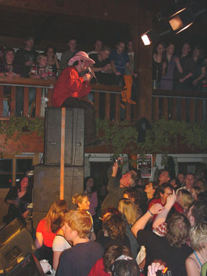 ![]() Auf der Bühne war so wenig Platz, dass Martin Wilhelm und Edi „Da Bua“ Lengg, Ausflüge auch mal auf die Boxen Türme wagten. |
